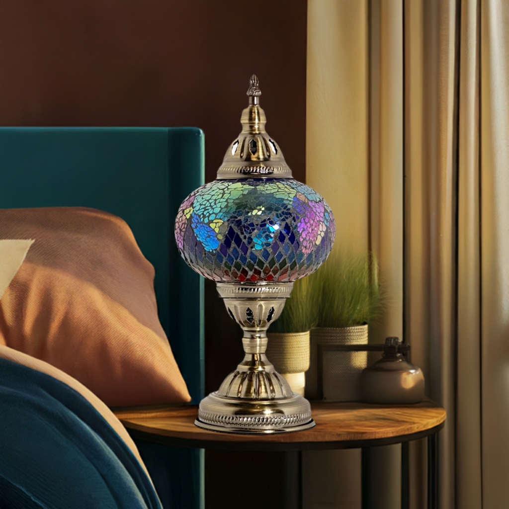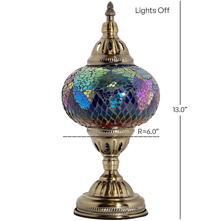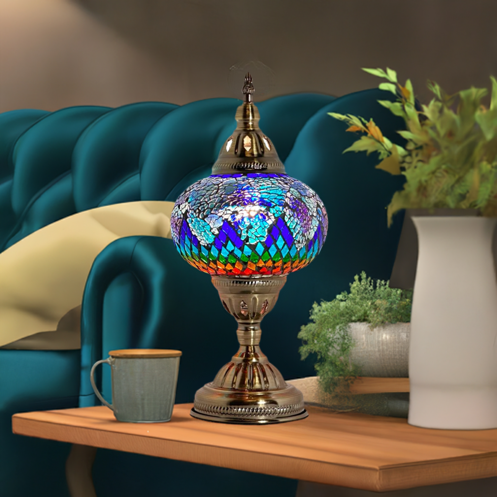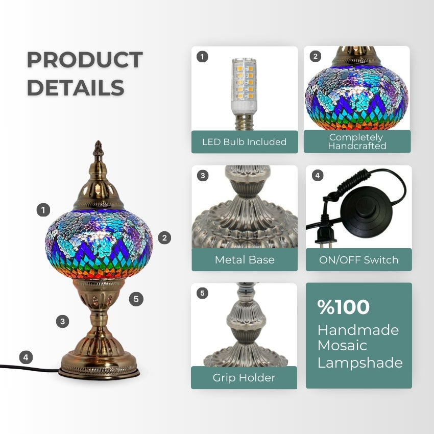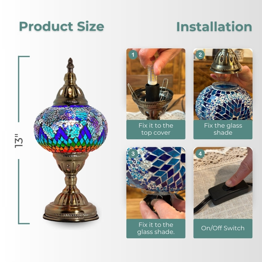 Each lamp is meticulously handcrafted by skilled artisans, ensuring the highest quality and attention to detail. The intricate mosaic work and carefully placed pattern of colors showcase the passion and dedication of the artists, making each piece truly unique and one-of-a-kind.