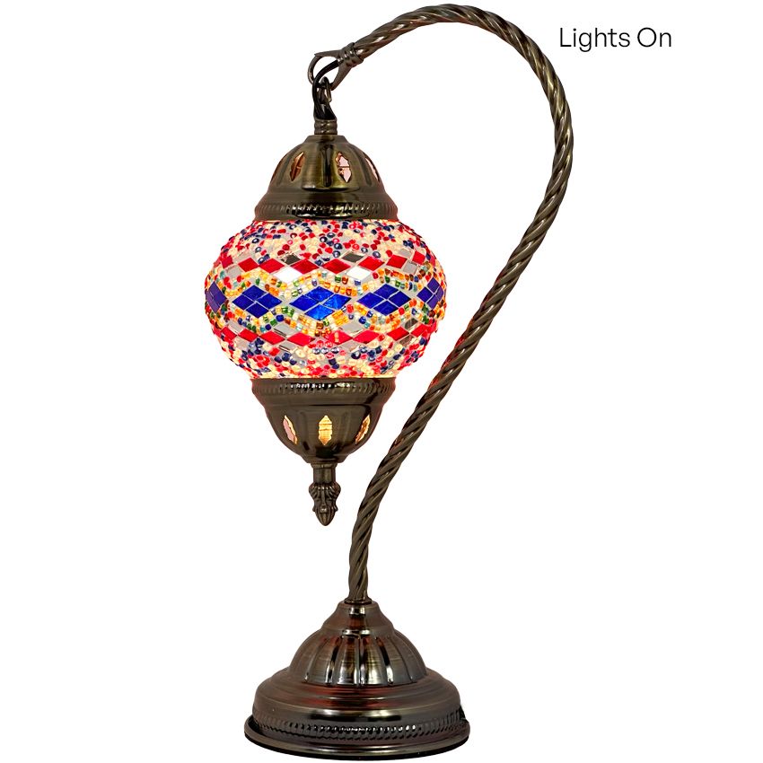 Turkish Lamp with Blue & Red Diamond Patterns - Swan Neck Elegance