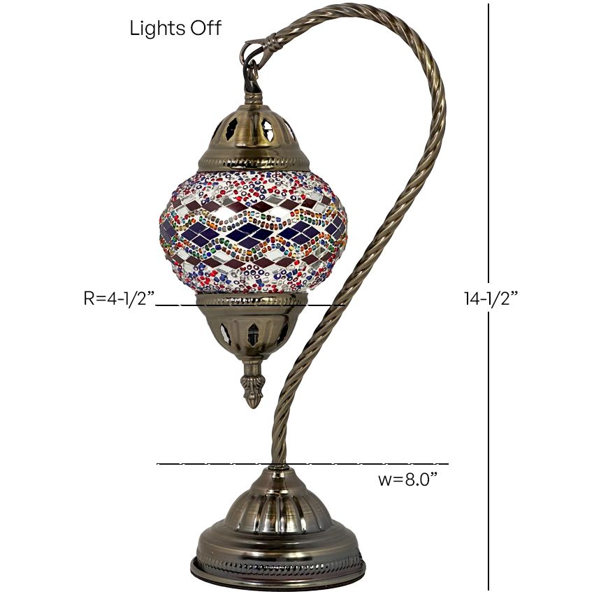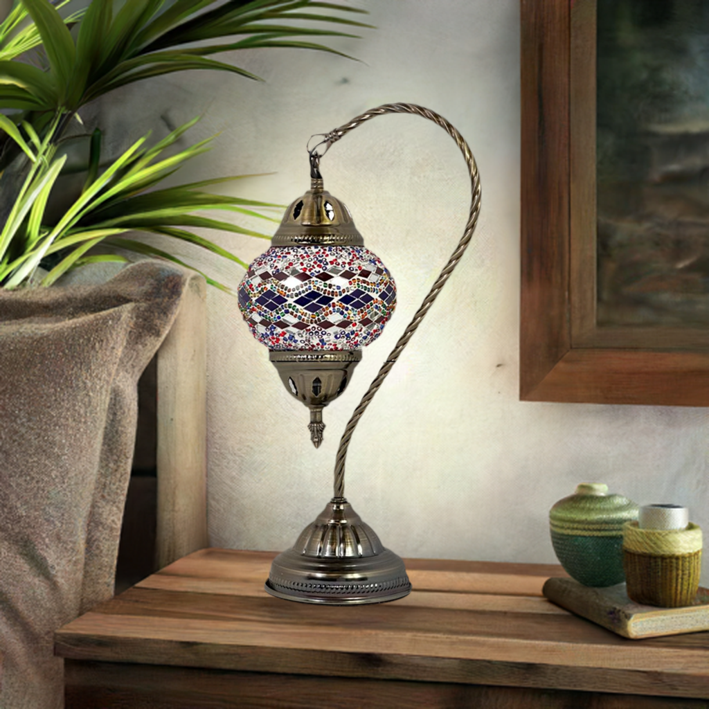 Bring the vibrancy of color, the allure of geometric patterns, and the elegance of handcrafted design into your home. Add the Turkish Lamp with Blue & Red Diamond Patterns - Swan Neck Elegance to your cart today and experience the magic it brings to your space!