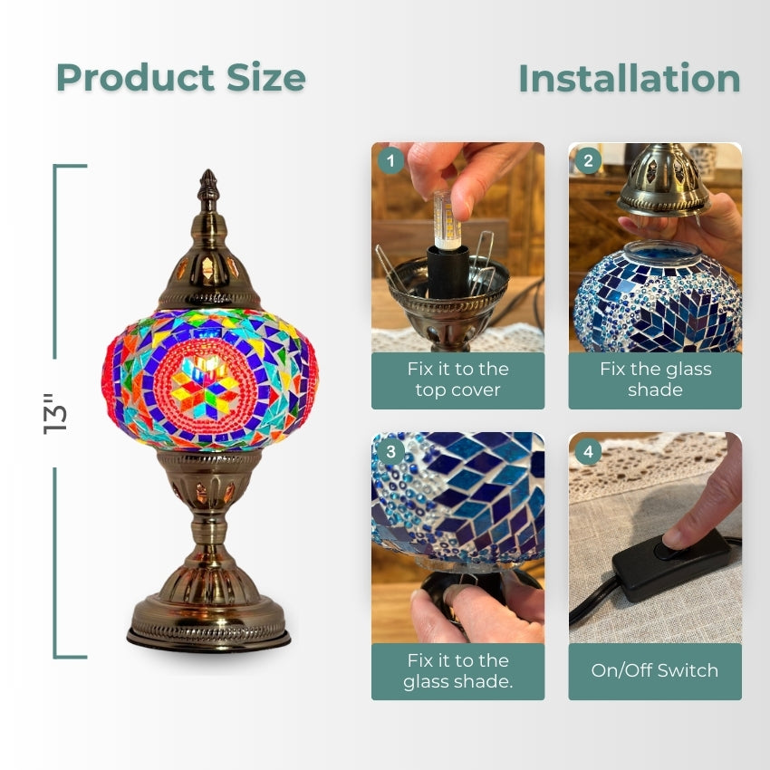 - Handcrafted with care, each piece of glass is carefully placed by skilled Turkish artisans, resulting in a one-of-a-kind work of art that reflects cultural heritage and traditional craftsmanship.