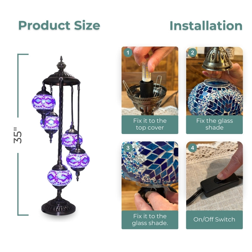 This lamp is a testament to the skill and dedication of Turkish artisans. Each piece is meticulously handcrafted with the highest quality materials, ensuring that your lamp is not only beautiful but also durable and long-lasting. The intricate mosaic work and the careful attention to detail showcase the passion and artistry that goes into creating each unique piece.
