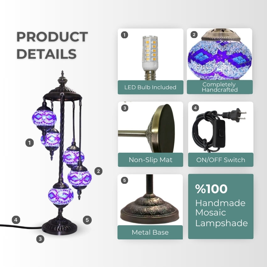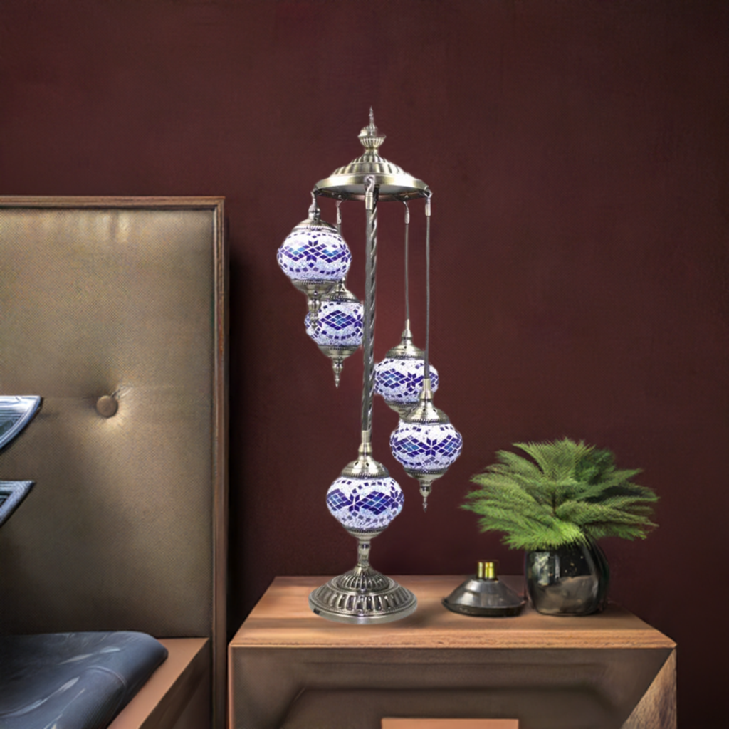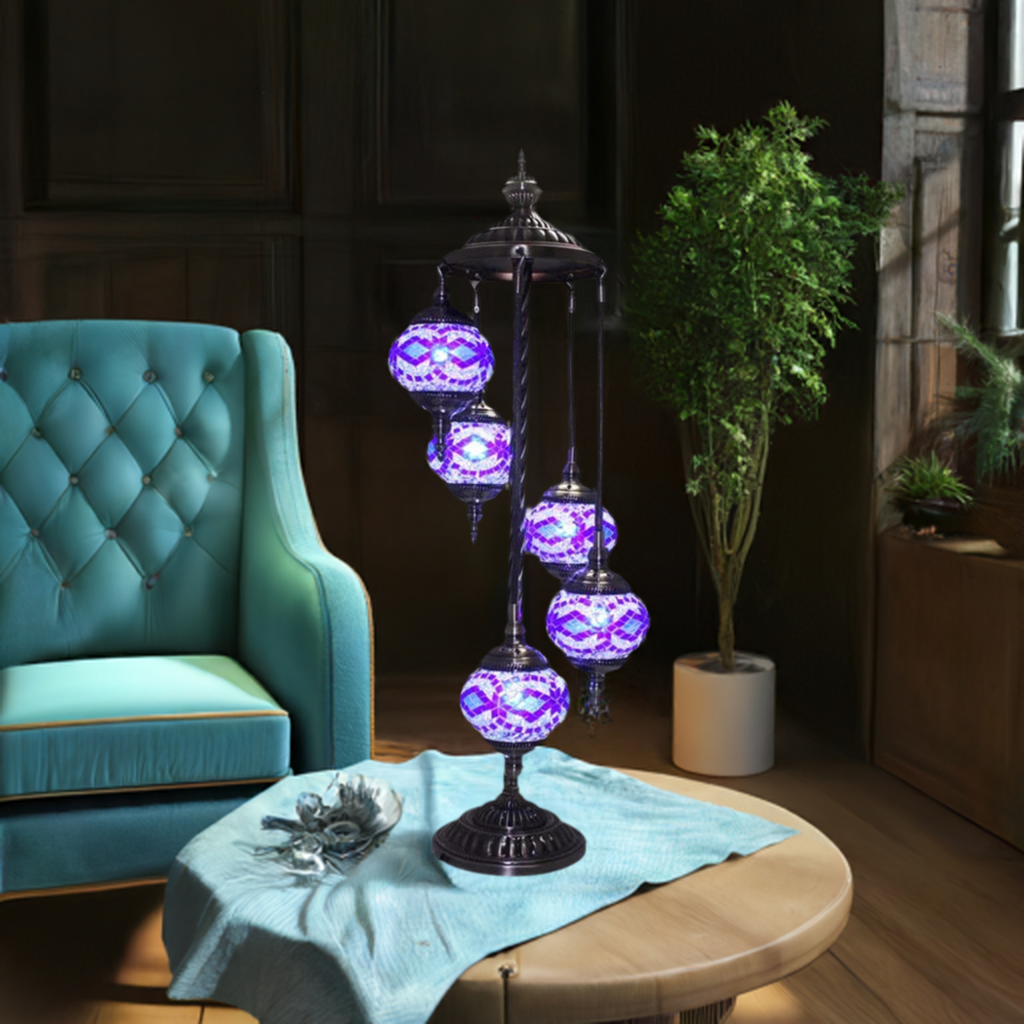 Bring the elegance of Turkish artistry and the grandeur of a five-globe design into your home. Add the Turkish Floor Lamp with Blue Diamonds - 5-Globe Majestic Design to your cart today and experience the magic it brings to your space!