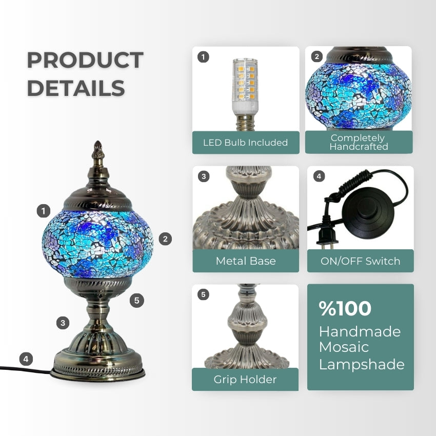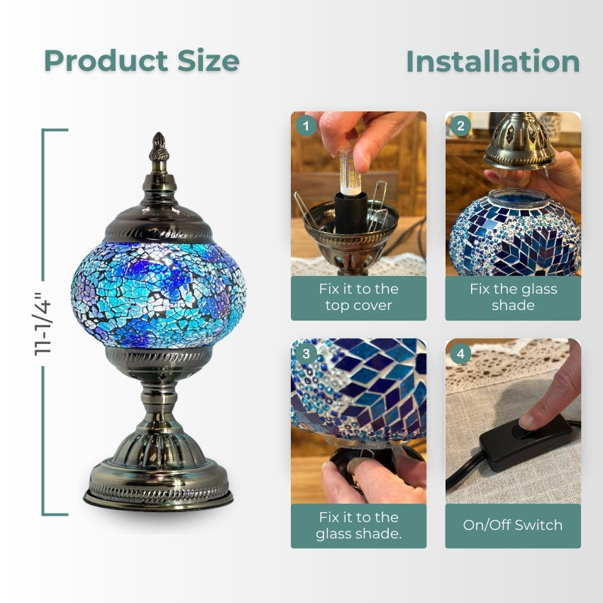 This captivating lamp is more than just a source of light; it's a statement piece that elevates your home decor to new heights of elegance and tranquility. Its mesmerizing color palette and intricate mosaic design create a soothing and inviting ambiance, perfect for adding a touch of calming beauty to living rooms, bedrooms, or any space seeking a touch of serenity.