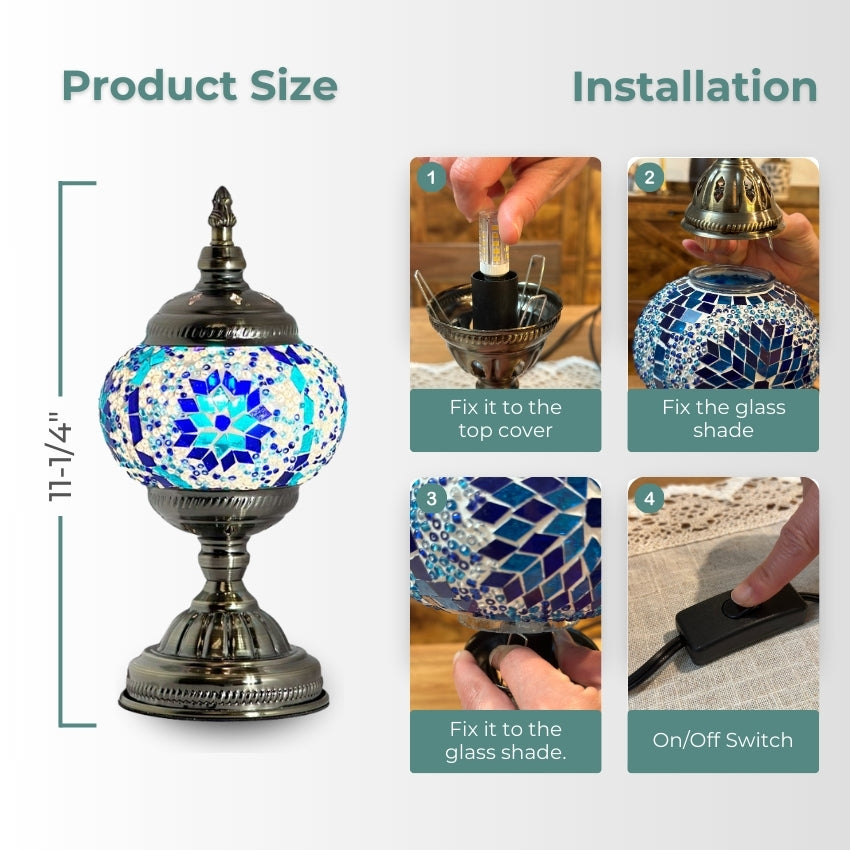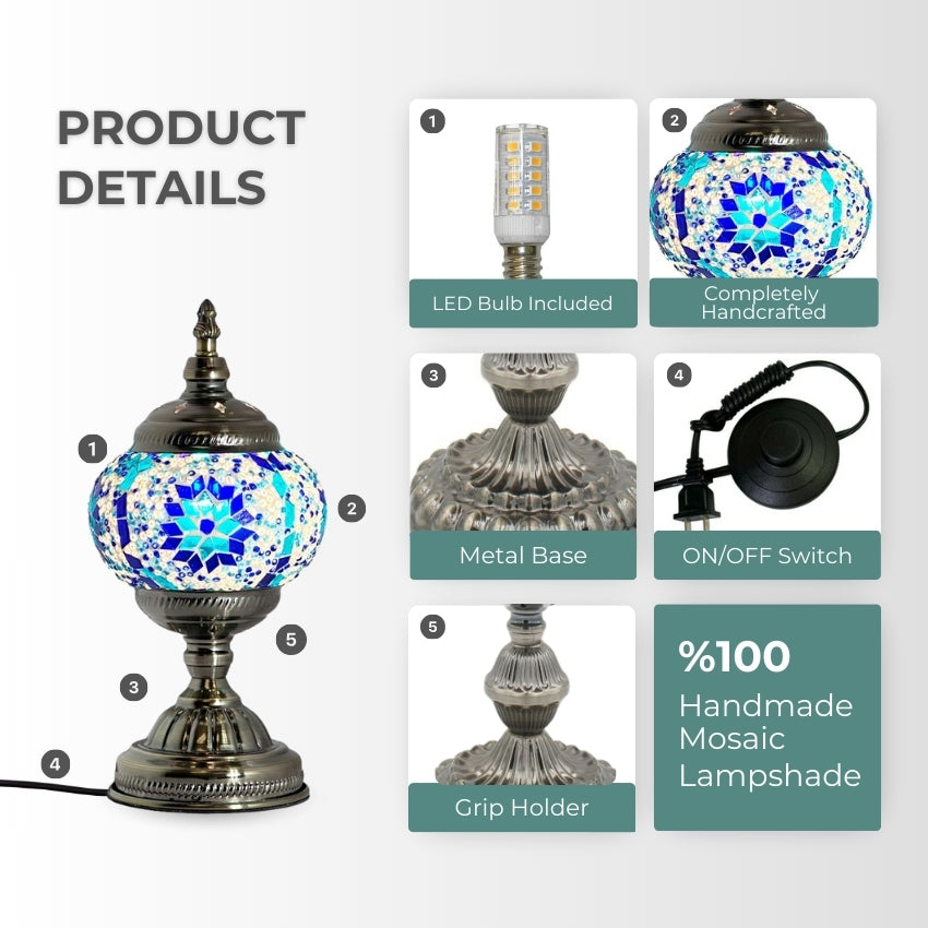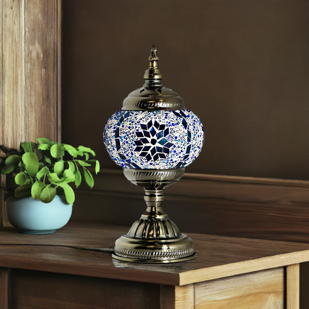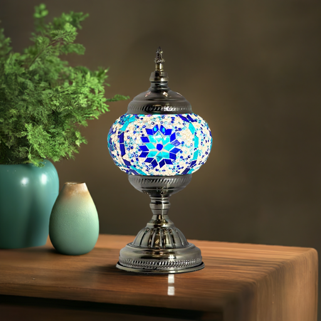 Embrace the beauty of traditional craftsmanship with the Moroccan-Inspired Blue Mosaic Lamp. Order yours today and experience the magic of handcrafted mosaic art.