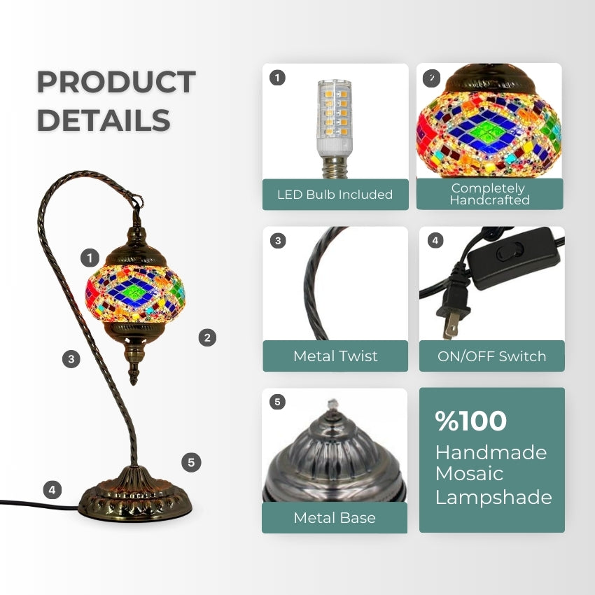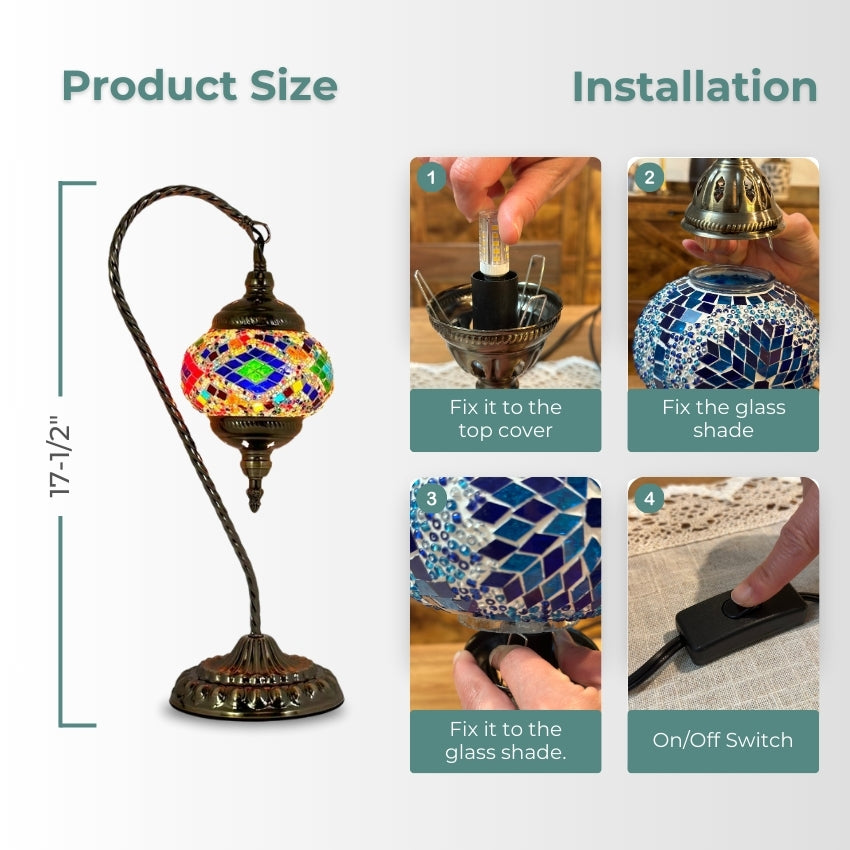 Bring the vibrancy of color and the elegance of handcrafted design into your home. Add the Vibrant Aura Handmade Swan Neck Mosaic Lamp to your cart today and experience the magic it brings to your space!