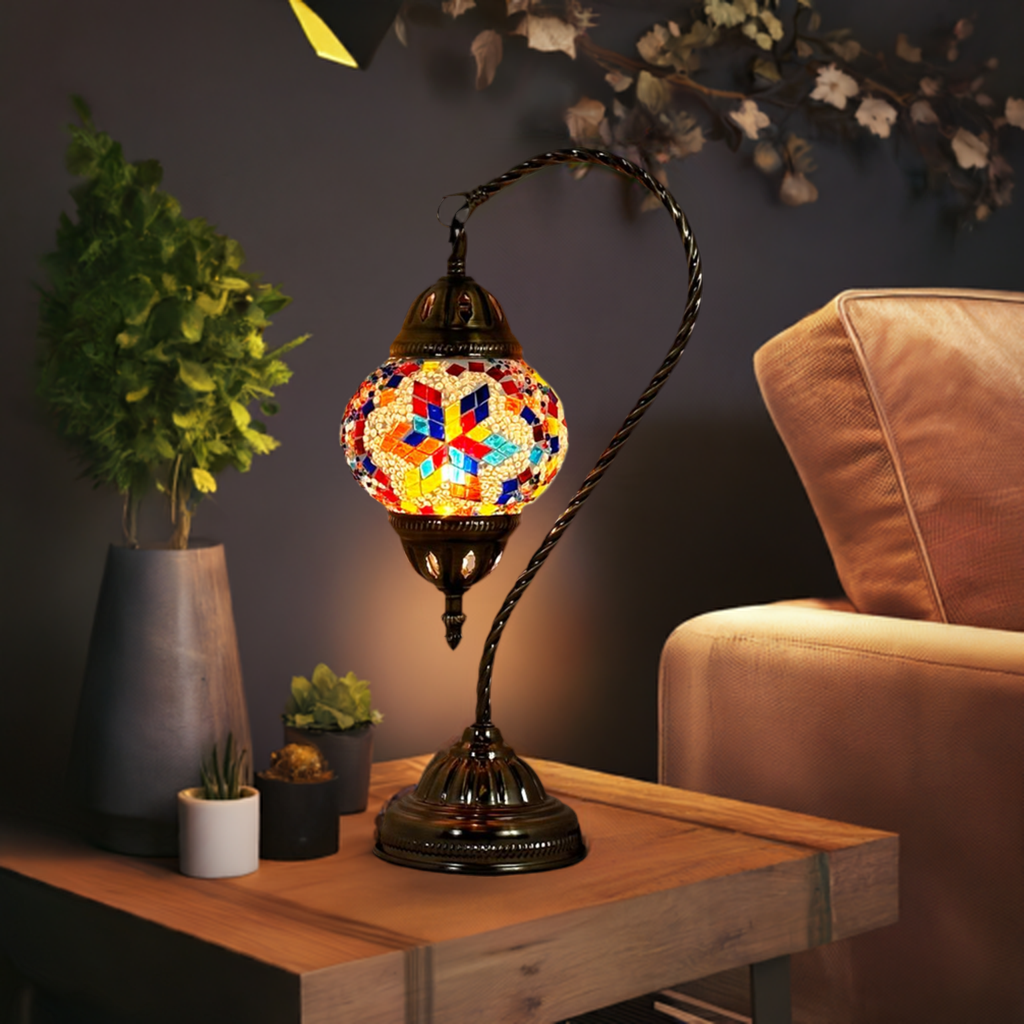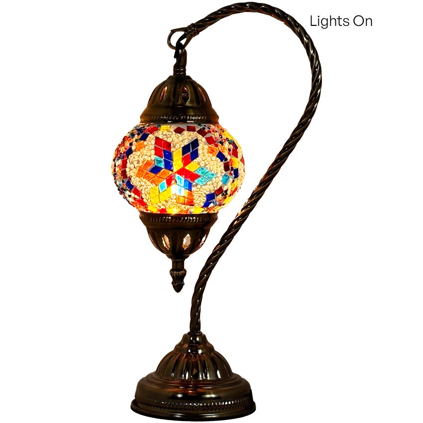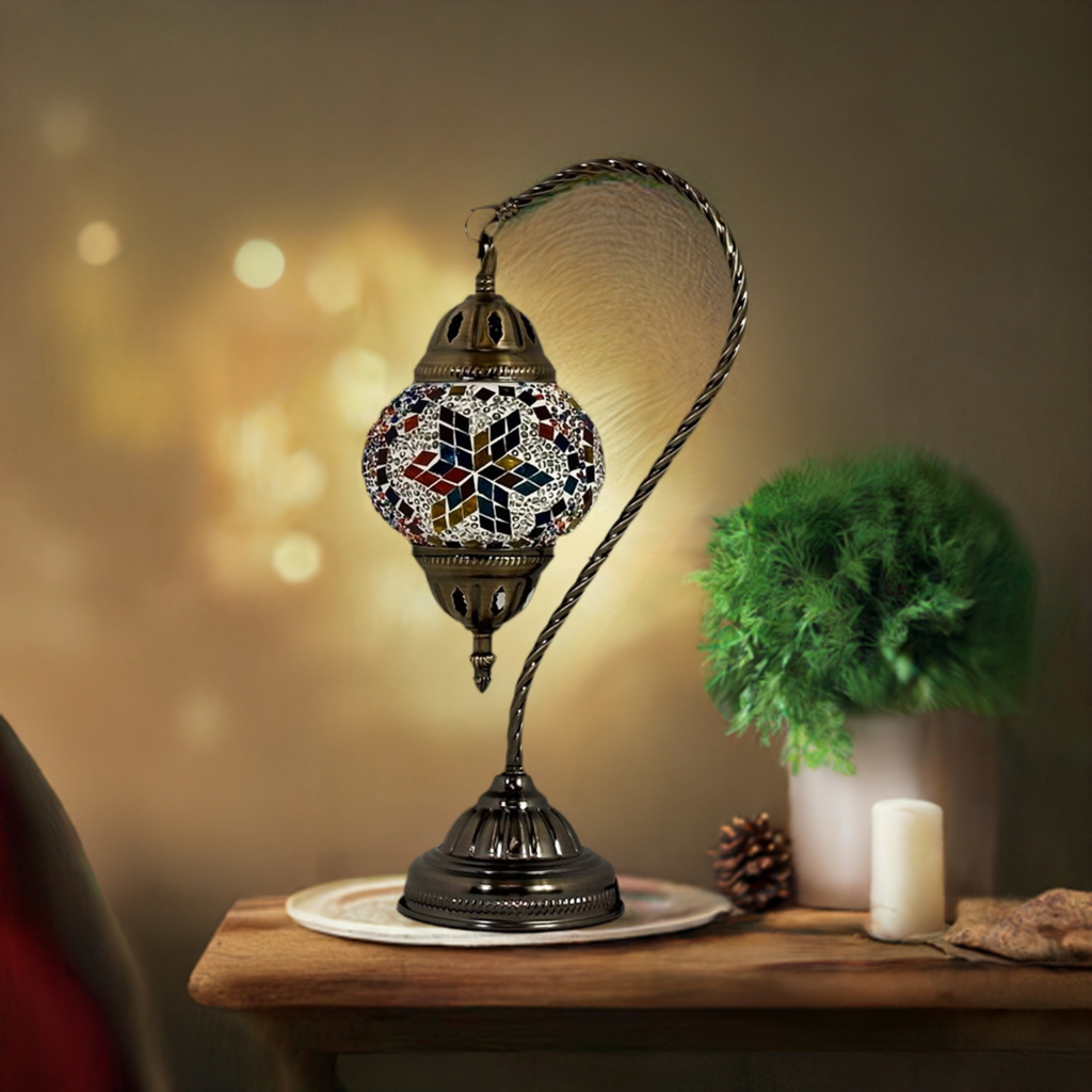Moroccan Essence: Colorful Mosaic Lamp with Swan Neck