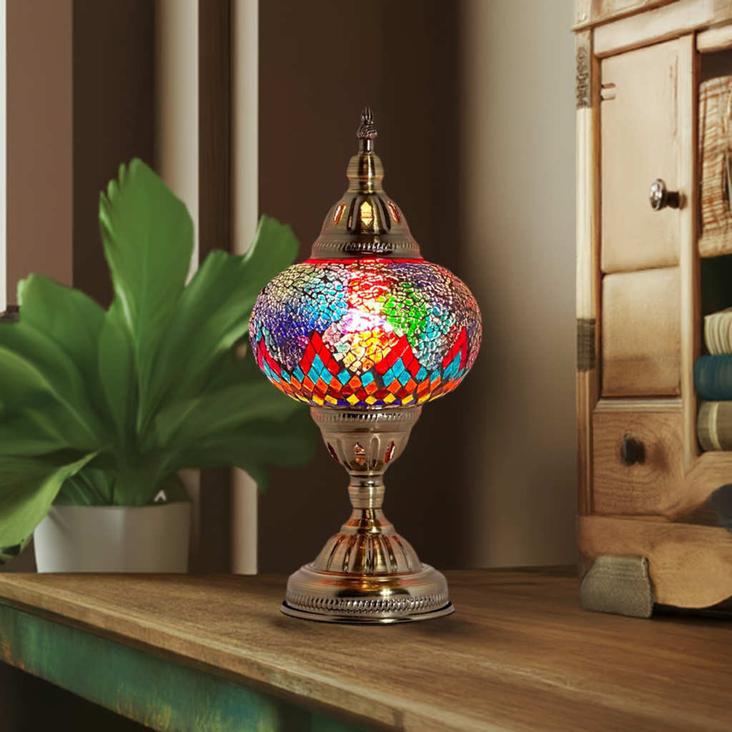 Cosmic Rainbow Bridge: Turkish Mosaic Lamp with Colorful Glasses