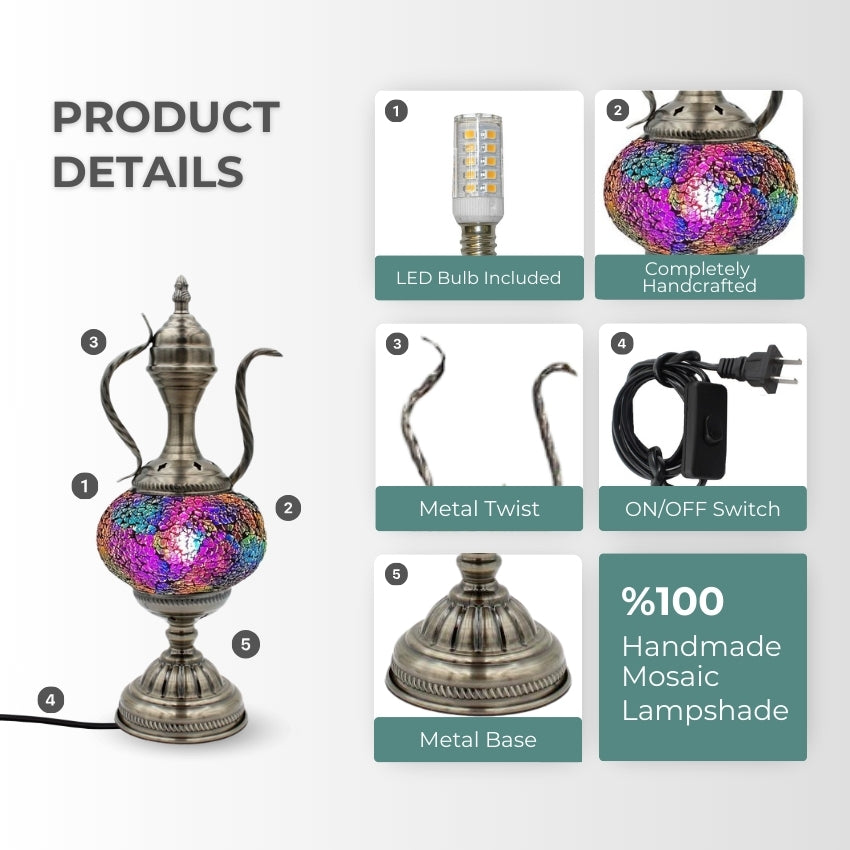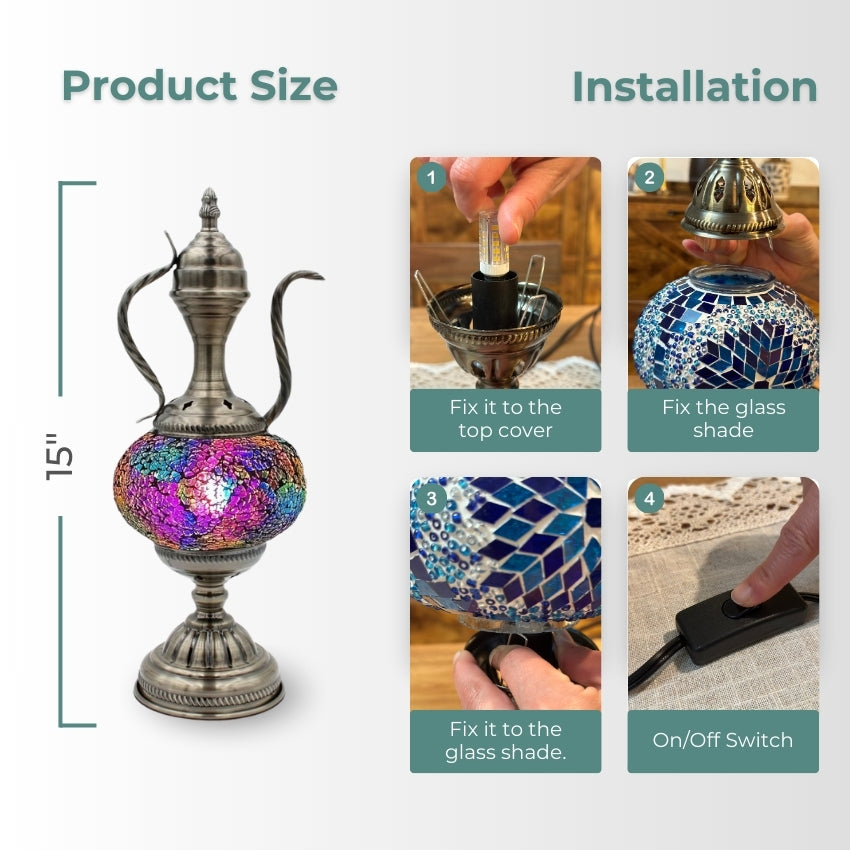 - Reflecting the rich traditions of Turkish design and artistry, combined with a vintage aesthetic, this lamp showcases the beauty of cultural fusion and timeless artistic expression.