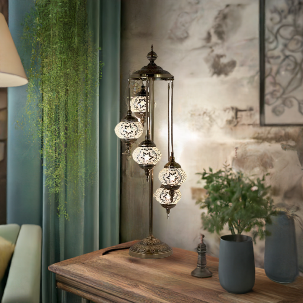 Lunar Glow: Handmade Turkish Lamp with Quintuple Globes