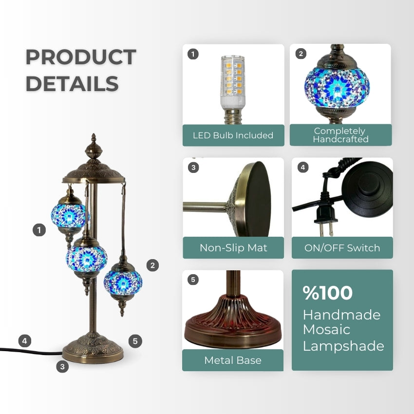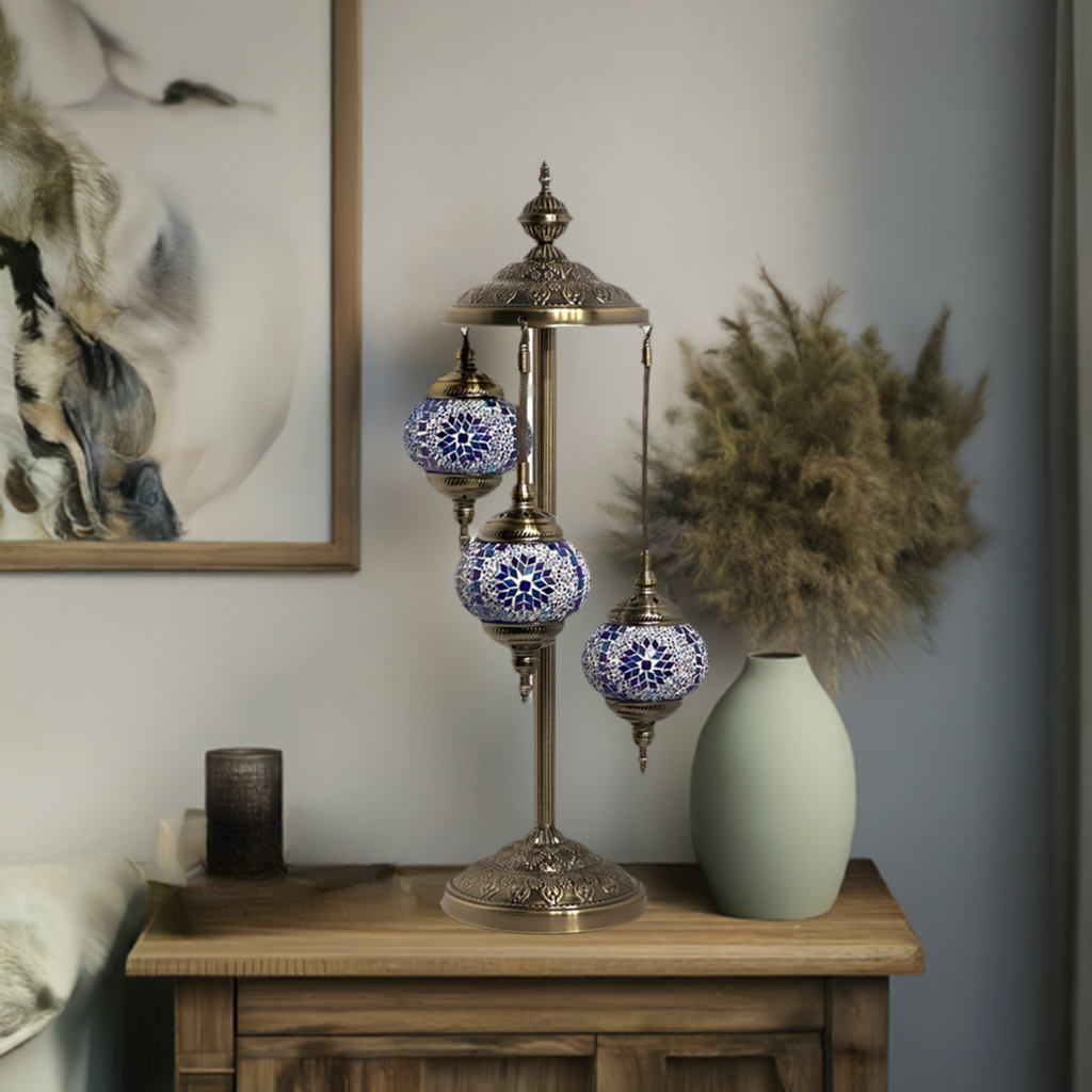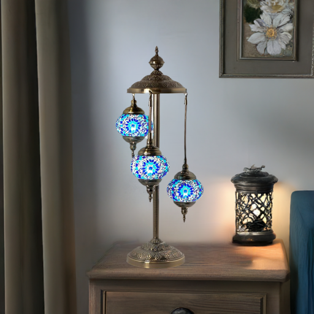 Blue Star Magic: Moroccan-Style Turkish Mosaic Floor Lamp with 3 Globes