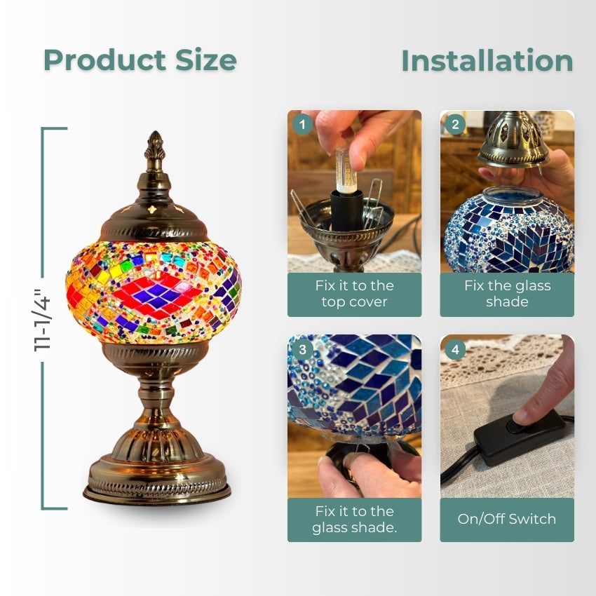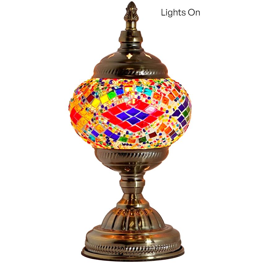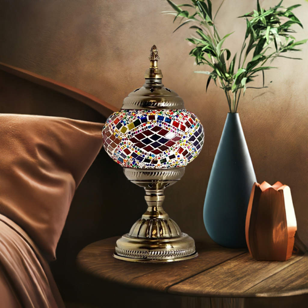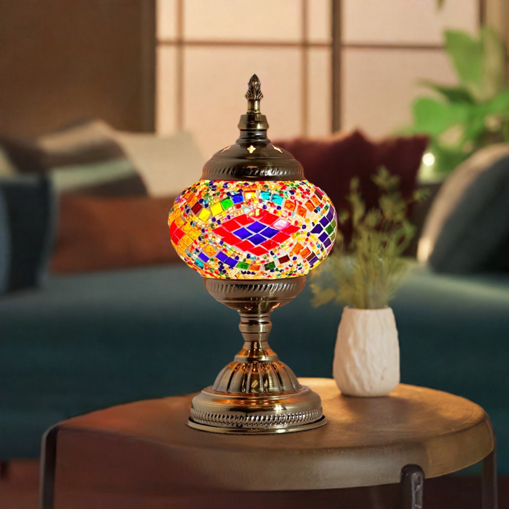 Embrace the rainbow harmony of the Moroccan-Style Mosaic Table Lamp. Order yours today and experience the magic of handcrafted mosaic art.