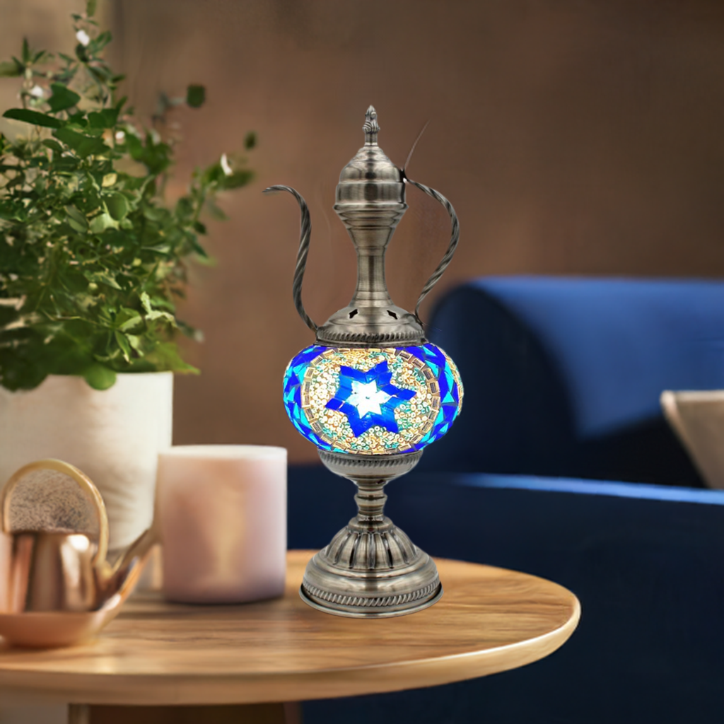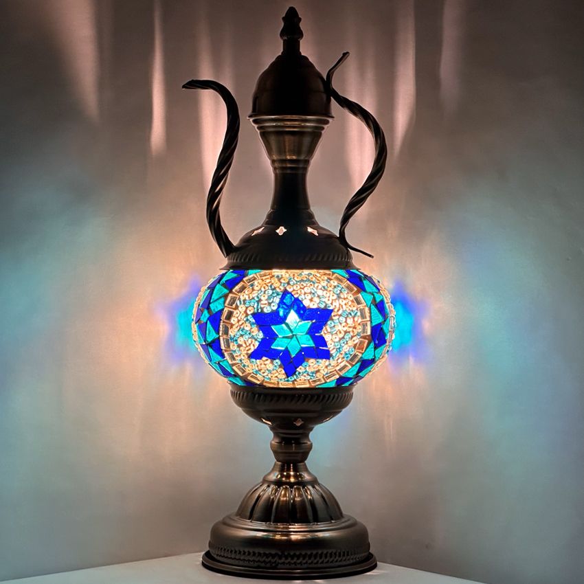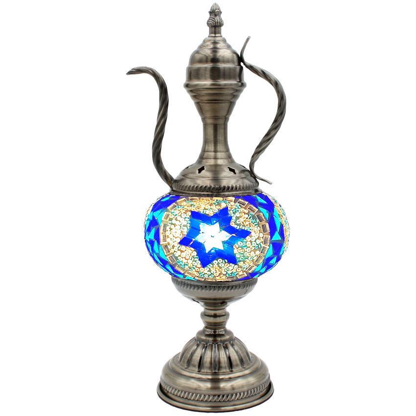 Turkish Blue Star Pitcher Lamp - Unique Mosaic Lighting Piece