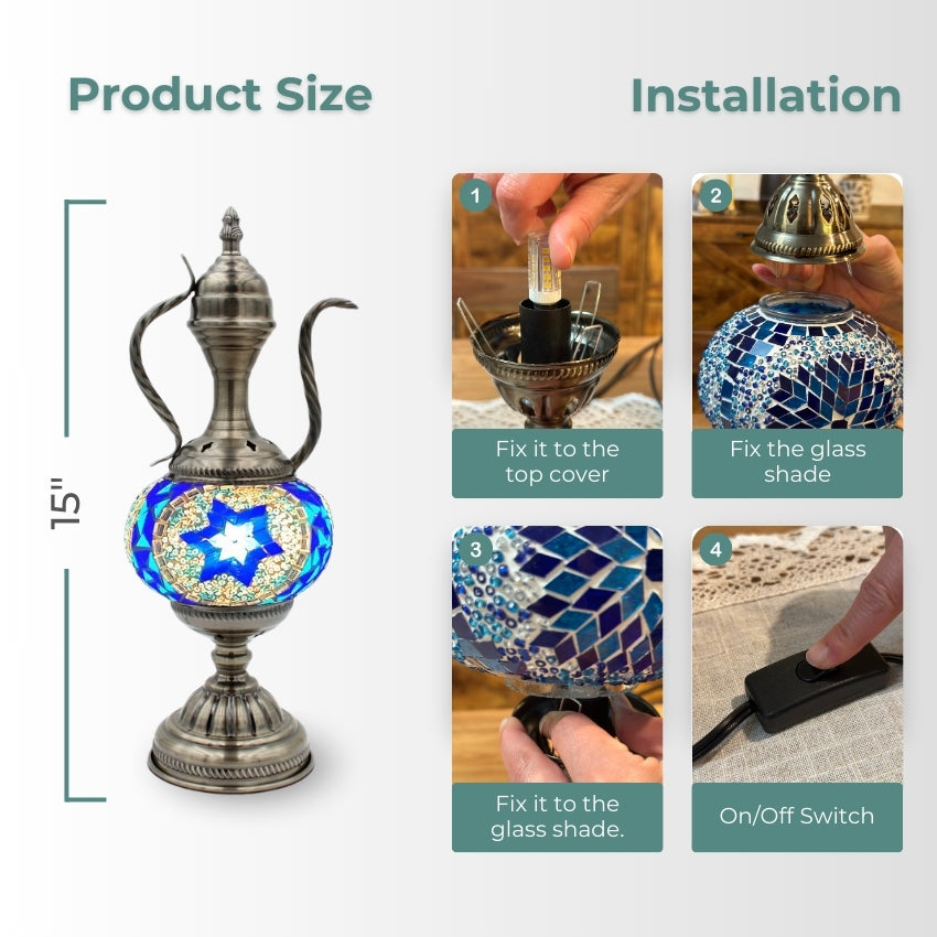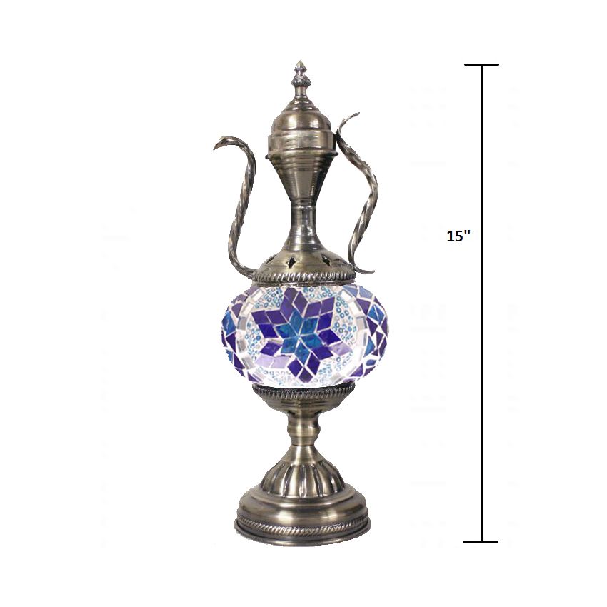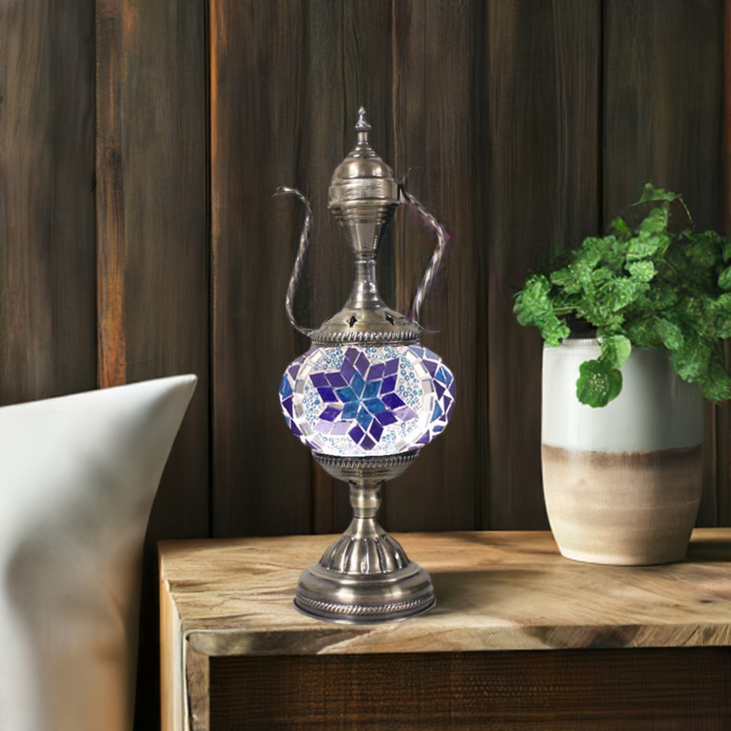 Bring the magic of a starry night sky and the beauty of Turkish mosaic art into your home. Add the Turkish Blue Star Pitcher Lamp to your cart today and experience the tranquility it brings to your space!