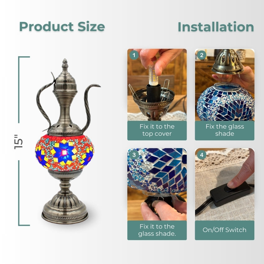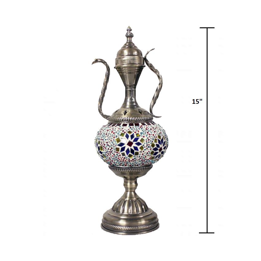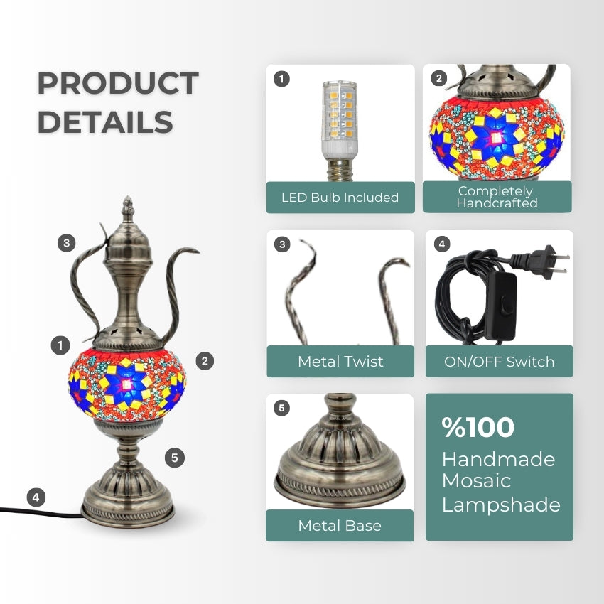 Bring the beauty of Turkish artistry and the warmth of handcrafted design into your home. Add the Vivid Red Turkish Lamp with Colorful Flowers and Teapot Motif to your cart today!