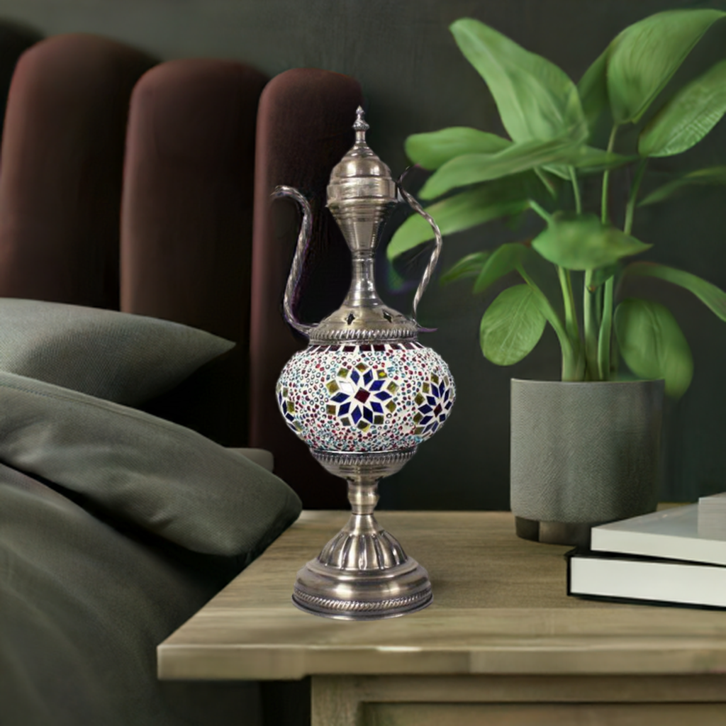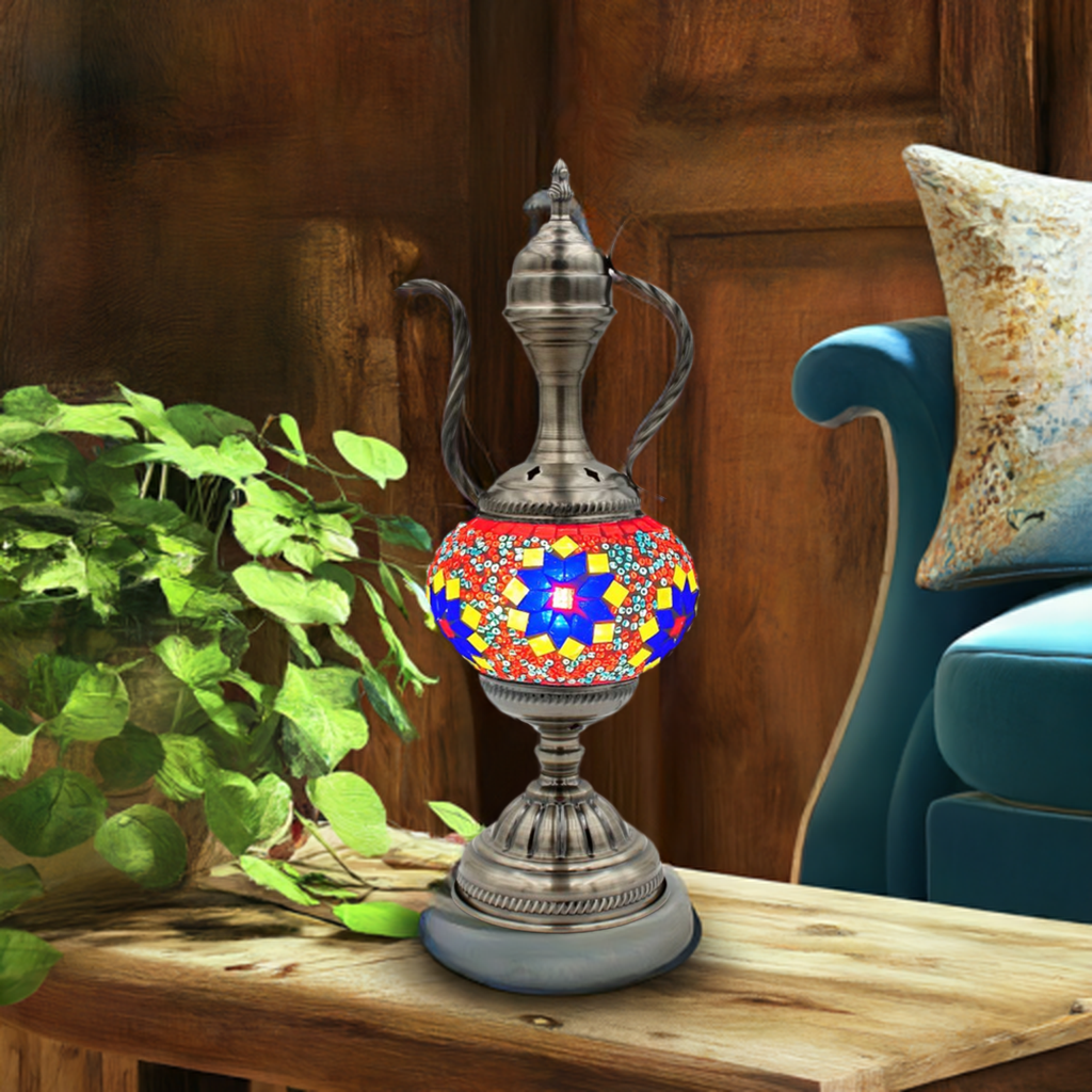 Infuse your home with the vibrant charm and cultural richness of the Vivid Red Turkish Lamp with Colorful Flowers and Teapot Motif. This exquisite handcrafted piece is more than just a lamp; it's a work of art that transforms your space, adding a touch of elegance and warmth to any room.