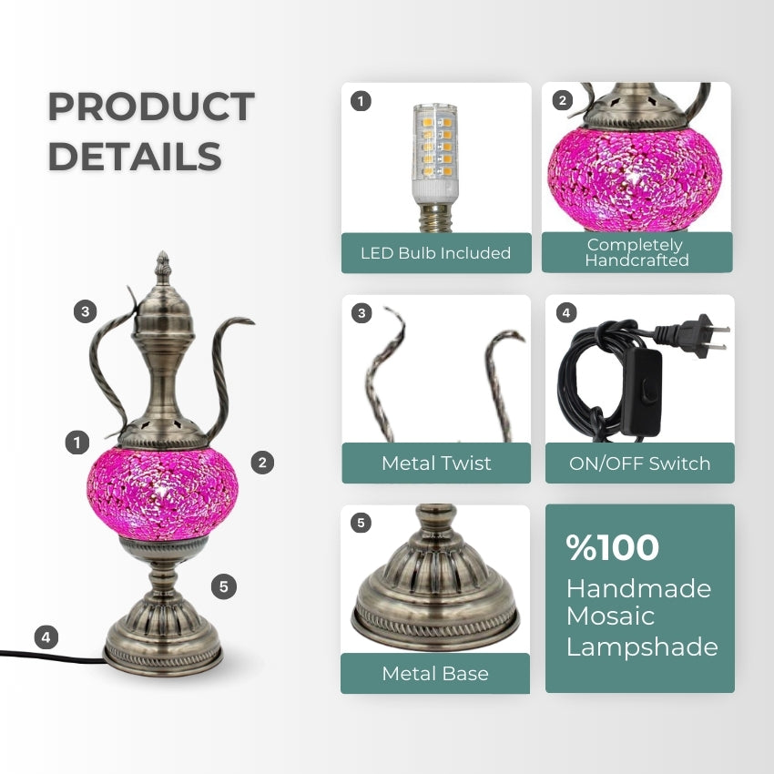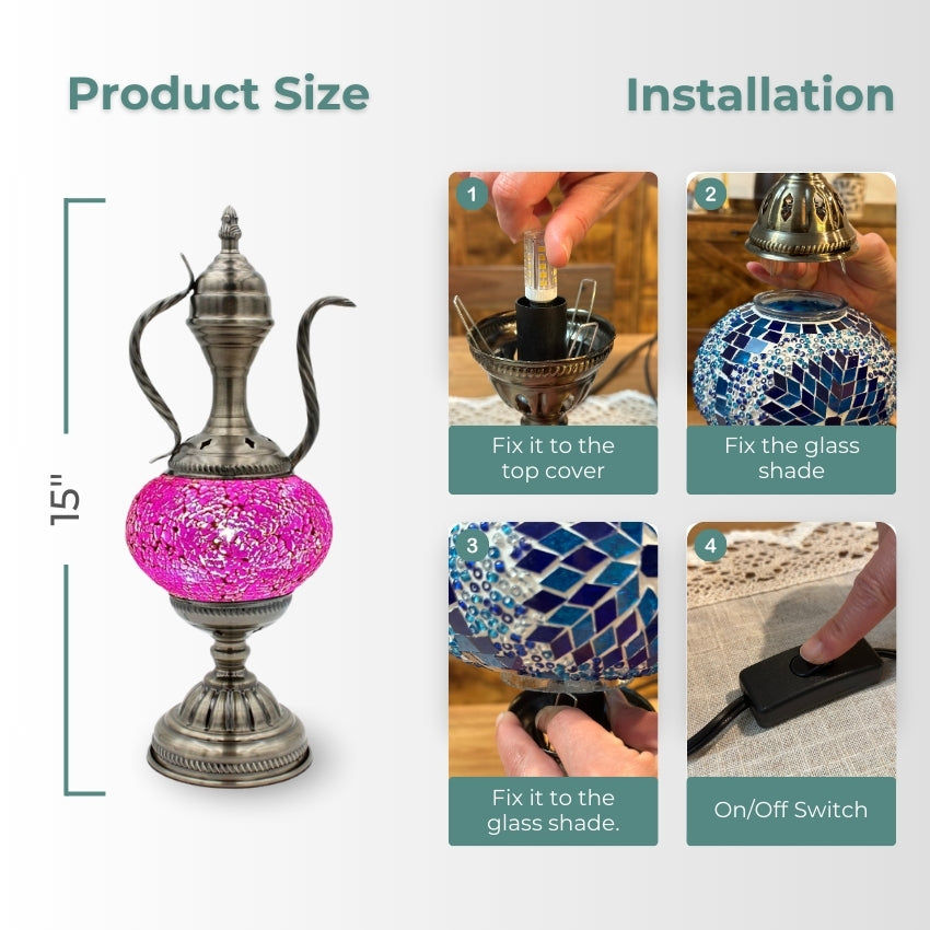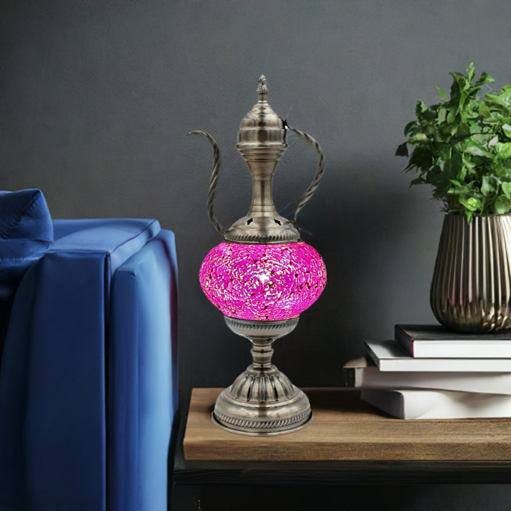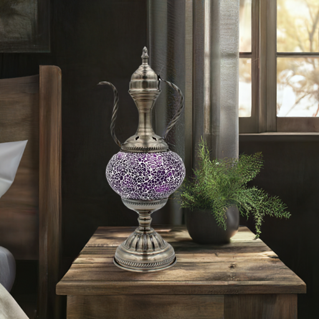 This captivating lamp is more than just a source of light; it's a statement piece that elevates your home decor to new heights of elegance and cultural richness. Its unique teapot design and mesmerizing royal purple color evoke a sense of Turkish delight and sophistication, perfect for adding a touch of regal charm to living rooms, bedrooms, or any space seeking a touch of the extraordinary.