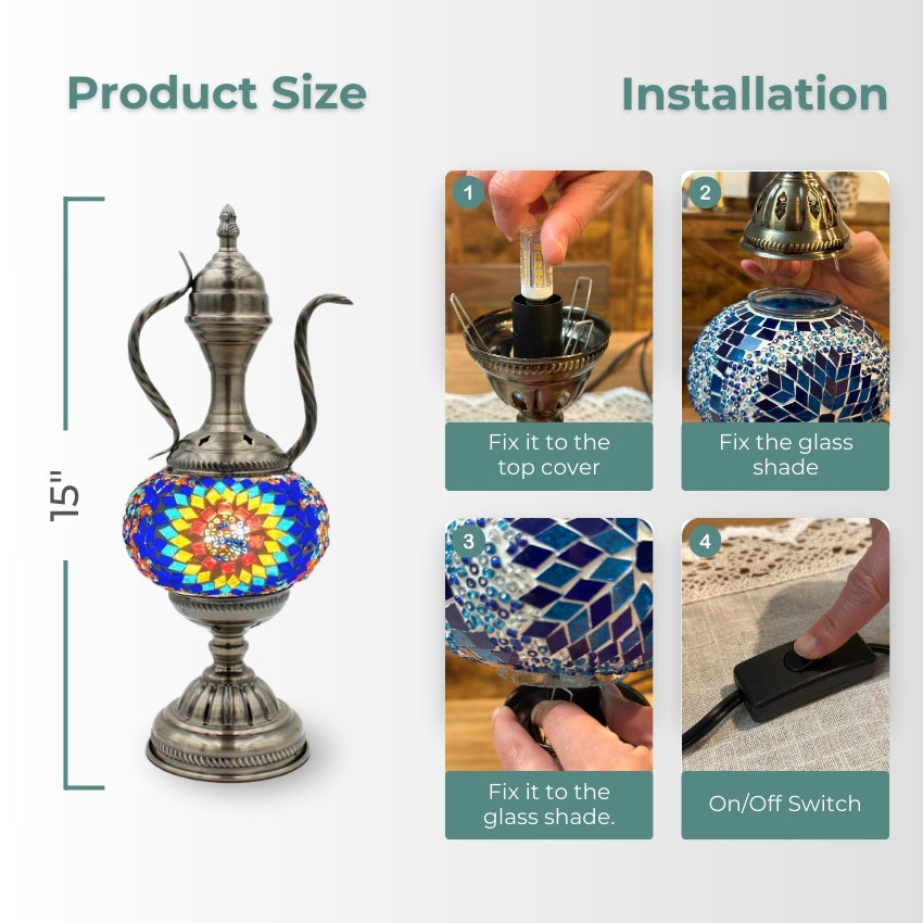 - Handcrafted with Care: "Each lamp is meticulously crafted by skilled artisans, ensuring exceptional quality and attention to detail."