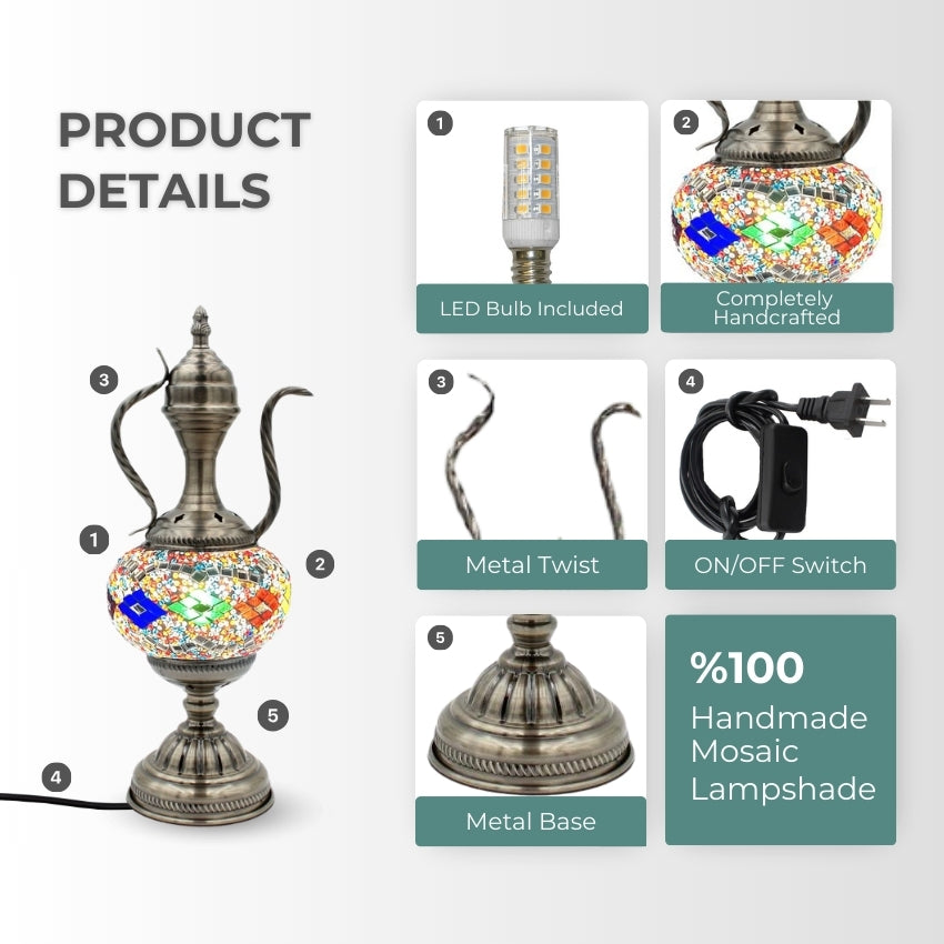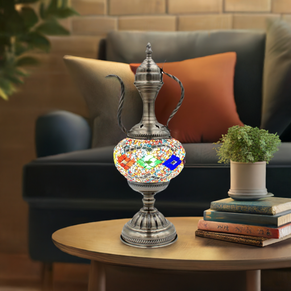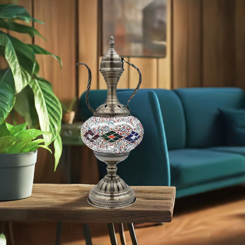 Colorful Elegance: Turkish Lamp with Diamond Mosaic Pitcher