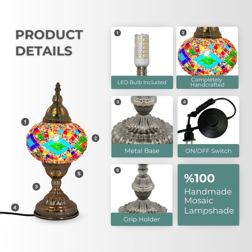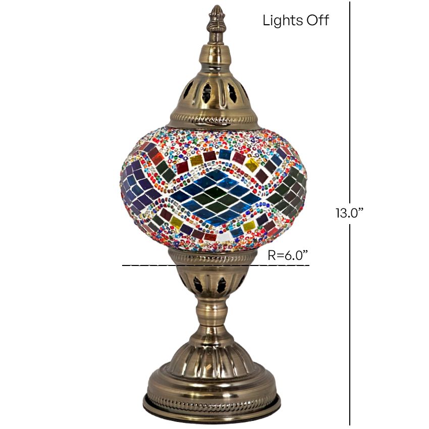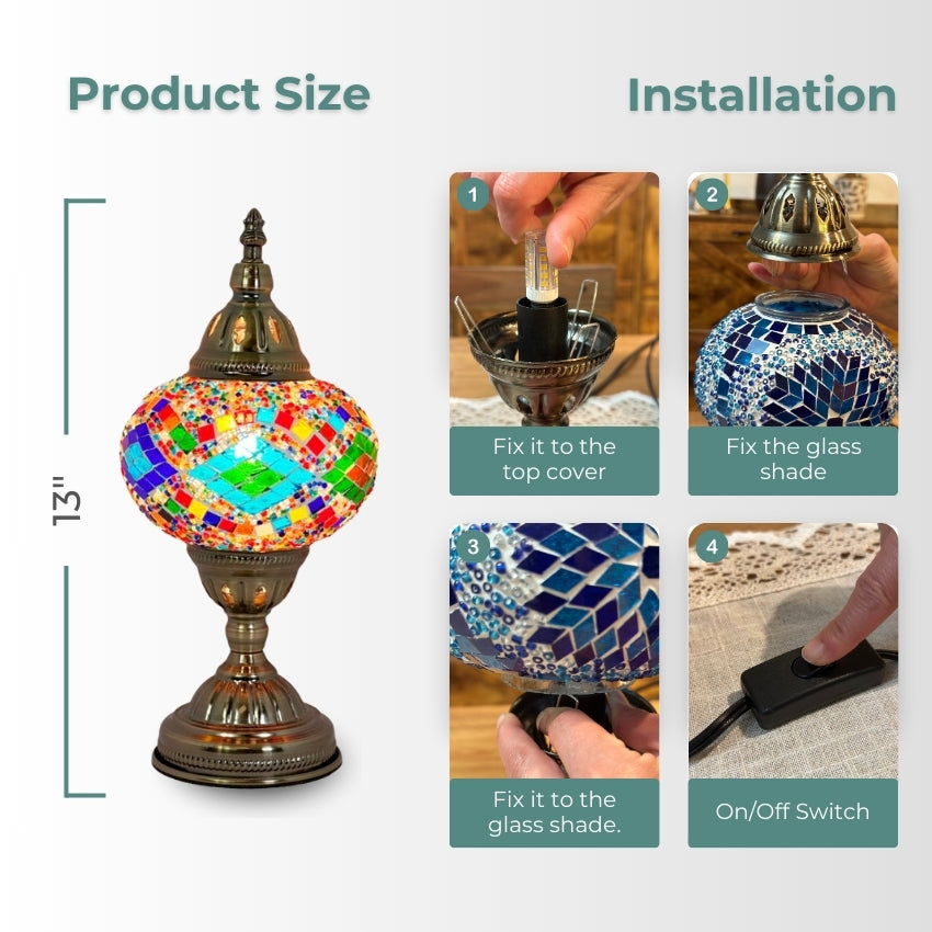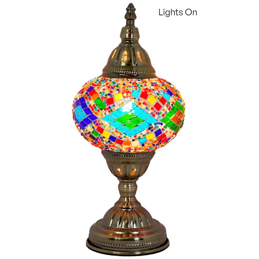 Embark on a kaleidoscopic journey with our Multicolor Diamond Road Design Turkish Mosaic Lamp. This exquisite piece is a testament to the artistry of Turkish craftsmanship, featuring a mesmerizing array of multicolored glass pieces meticulously arranged in a unique diamond road pattern.