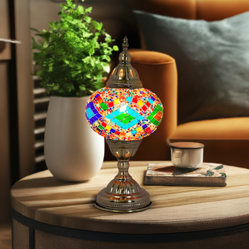 Kaleidoscopic Diamond Road: Multicolor Turkish Mosaic Lamp