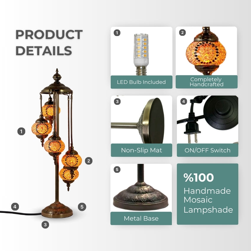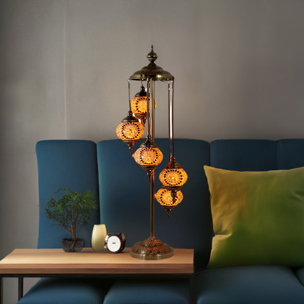 Bring the beauty of Turkish artistry and the warmth of handcrafted design into your home. Add the Vibrant Orange Blossom Handmade Turkish Lamp with Quintuple Globes to your cart today and experience the magic it brings to your space!
