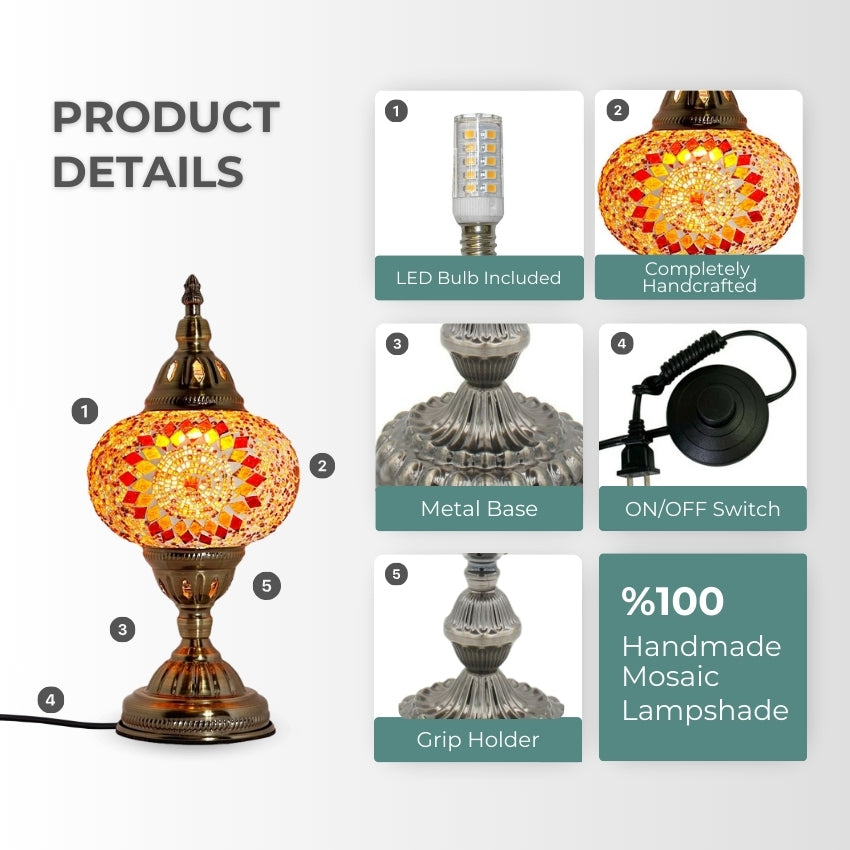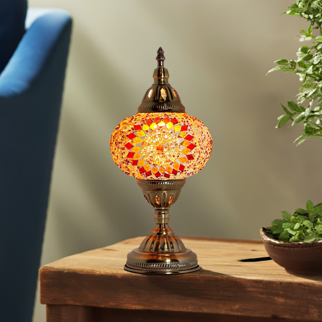 Embrace the retro elegance of the Orange Blossom Mosaic Vintage Lamp. Order yours today and experience the magic of handcrafted mosaic art.