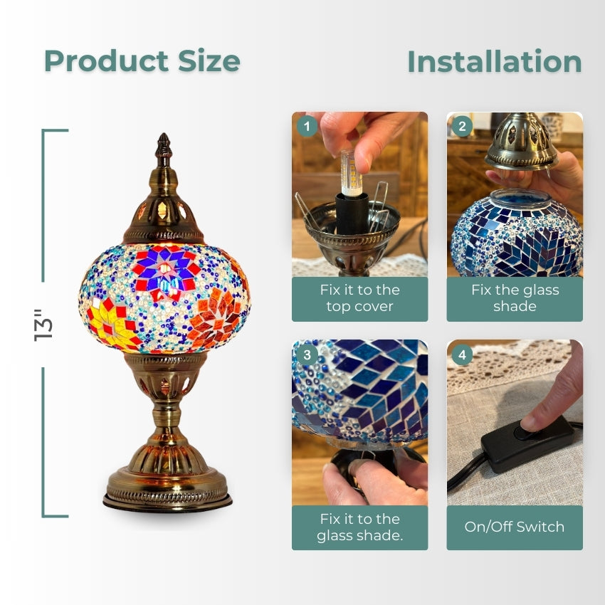 This lamp is a testament to the skill and dedication of artisans who take pride in their craft. Each piece is meticulously handcrafted with the highest quality materials, ensuring that your lamp is not only beautiful but also durable and long-lasting. The intricate mosaic work and the careful attention to detail showcase the passion and artistry that goes into creating each unique piece.