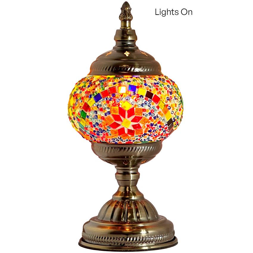 Experience the captivating charm of the Lively Rainbow Flower Handmade Mosaic Glass Lamp. This exquisite piece is a testament to the artistry of handcrafted mosaic design, featuring a vibrant and intricate floral pattern in a kaleidoscope of rainbow colors. Its playful display of hues and shapes creates a sense of joy and wonder, perfect for adding a touch of lively elegance to your home decor.