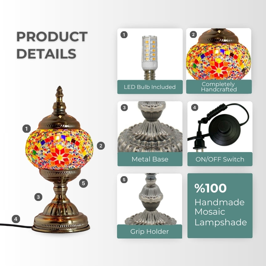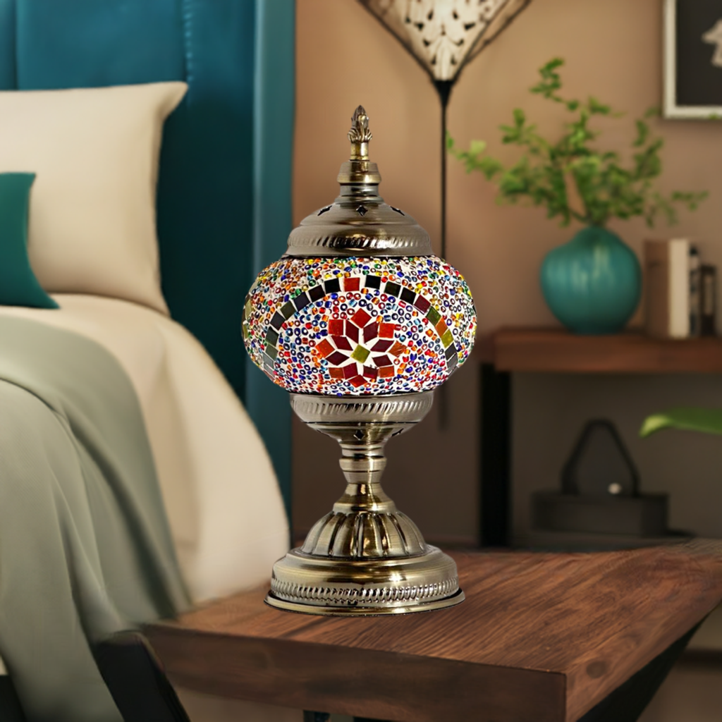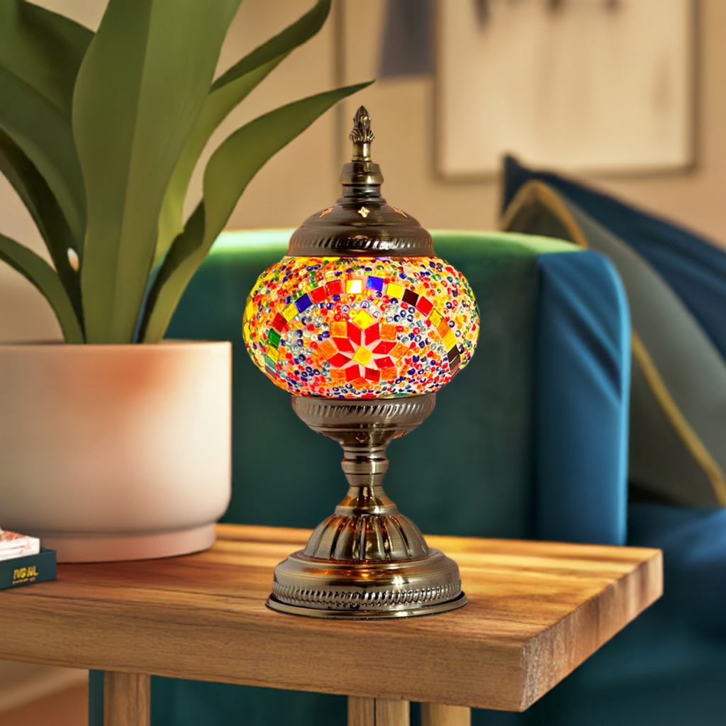 Embrace the vibrant beauty of the Multicolored Blossom: Rainbow Mosaic Table Lamp with Floral Pattern. Order yours today and experience the magic of handcrafted mosaic art.