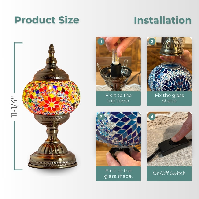 - Hand-cut and arranged mosaic glass pieces: Creates a unique and intricate pattern that shimmers with light.