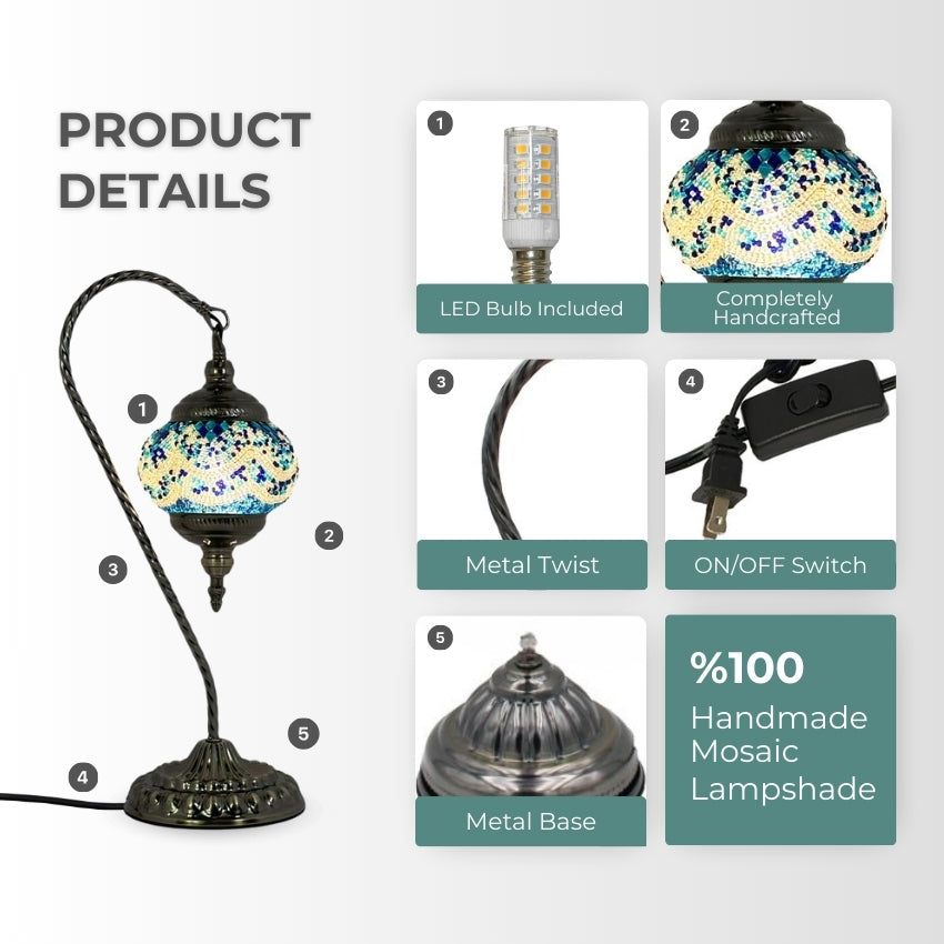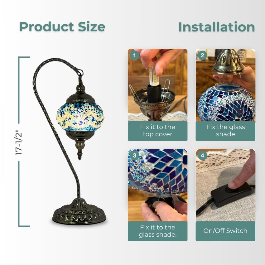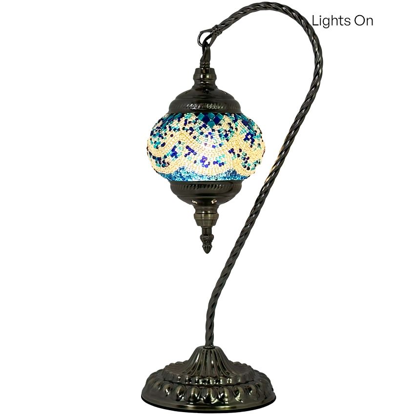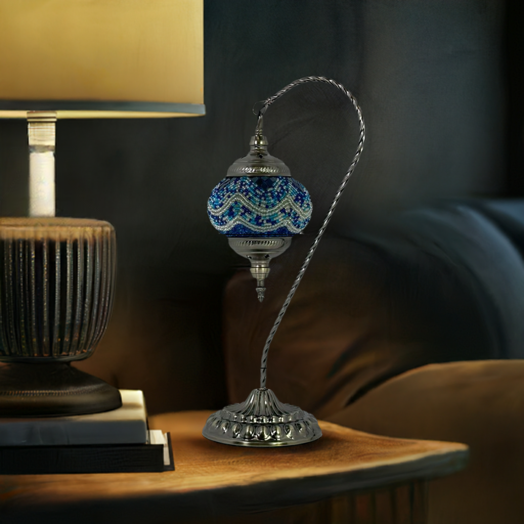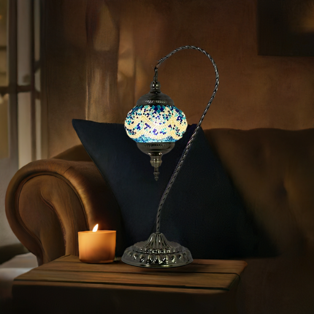 Azure Serenity: Sky Blue Swan Neck Turkish Mosaic Lamp