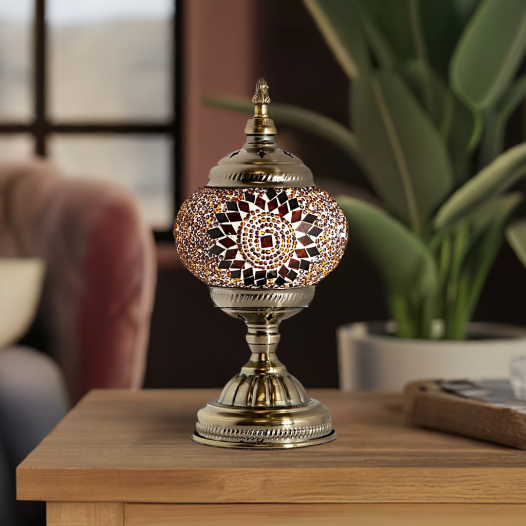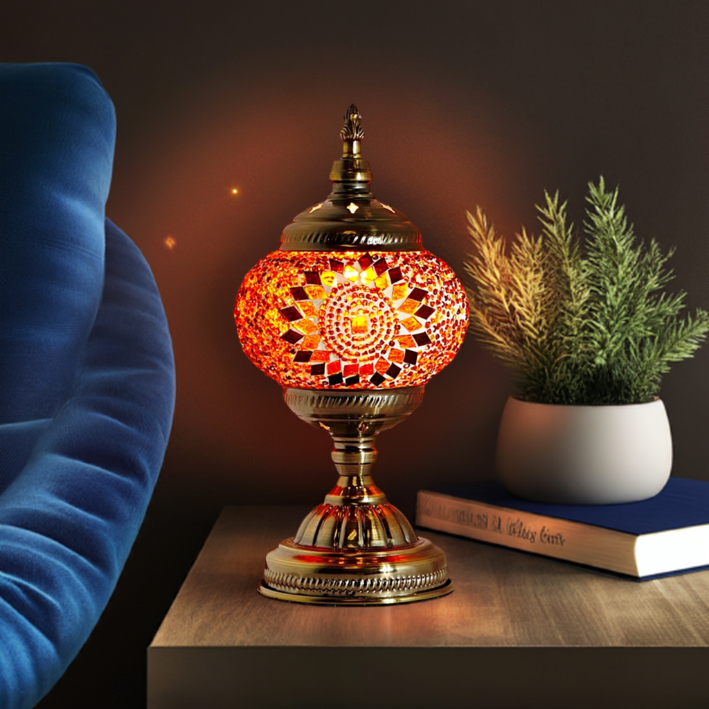Bring the beauty of a sunset into your home. Order your Bright Golden Sunburst Handmade Mosaic Glass Lamp today and experience the magic of Turkish artistry.