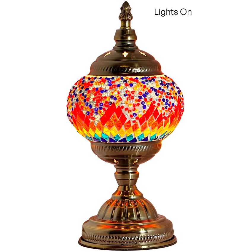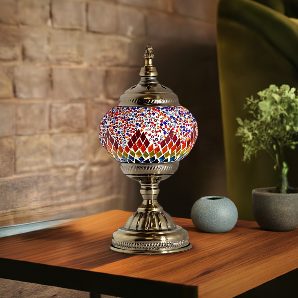 Crimson Spectrum: Illuminate Your Home with a Turkish Lamp Featuring a Red Rainbow Mosaic