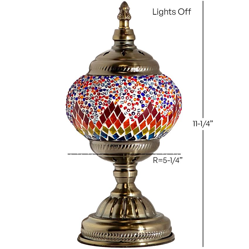 Embrace the artistry and vibrancy of the Crimson Spectrum Turkish Lamp. This handcrafted masterpiece features a mesmerizing red rainbow mosaic, casting a warm and inviting glow that transforms any room into a colorful sanctuary.